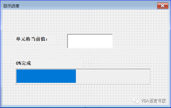 我们要在工作表中填充一系列的值,这项工作需要一定的时间,我们要让用户感受到时间的流逝,感受到进度的变化,最为直接的思路就是制作一个进度条提示给用户某时某刻程序执行进度到了什么程序,百分比是多少。这讲中我将利用一个文本框来显示工作表中填充数值的进度,利用进度条来实现提示用户程序整体进展的程度。