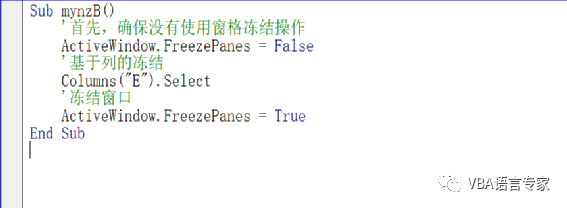 第二个应用是以当前工作表的E列为基准进行冻结。代码: