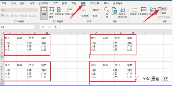 ① 冻结Excel中的行 如果想要冻结一行或多行,这意味着能够在向下滚动时保持它们可见,请做以下工作:a 选择要冻结的行的最后一行下方的整个行。b 转到"视图"-"冻结窗格"–"冻结窗格"或者,如果只想要冻结工作表的第一行,则可以选择"冻结首行",即可。 ② 冻结Excel中的列 类似地,如果在操作Excel中,想要冻结列,也可以应用相同的方法,从而在向右滚动时使它们保持可见。当然,如果只想要冻结第一列,则可以使用"冻结首列"。 ③ 同时冻结行和列 如果需要同时冻结行和列,则可以选择单个单元格,其中想要冻结的行位于该行上方,而要冻结的列位于其下方。换句话说,所选单元格左上角的单元格将保持冻结状态。 ④ 在Excel中拆分窗口 在Excel操作中,除了冷结窗口外,还可以拆分窗口。点击视图菜单下面的拆分即可,此时的窗口会出现下面的示例: