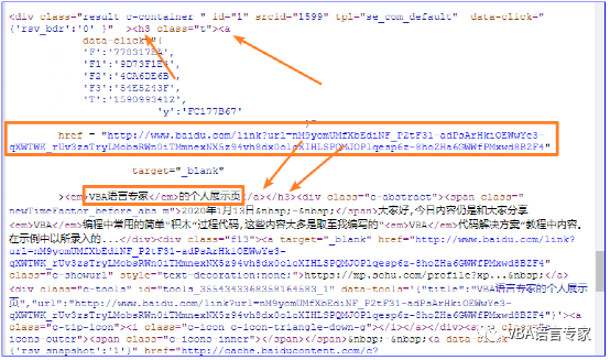 VBA网抓数据结果的链接