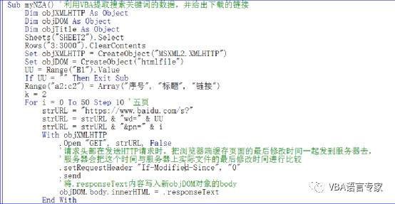 其中“标题”可以用innerText属性来获得,链接可以用href的属性来获得,真的非常容易,下面我们就要实现把多页查询的结果填到excel表格中,这个时候我们利用发送给服务器时要求头部检查一下查询的时间即可如下代码:.setRequestHeader "If-Modified-Since", "0"