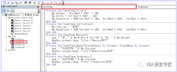 5) Private Sub UserForm_Terminate()