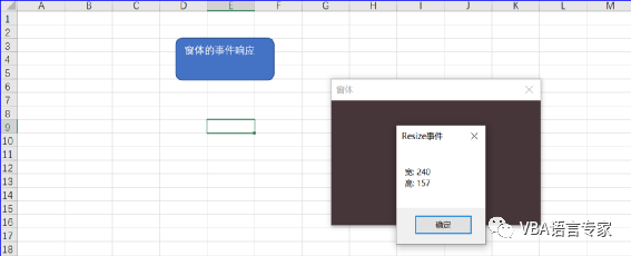 MsgBox prompt:=msg, Title:="Resize事件"