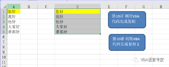 在VBA代码中的复制是利用Range对象的Copy方法,