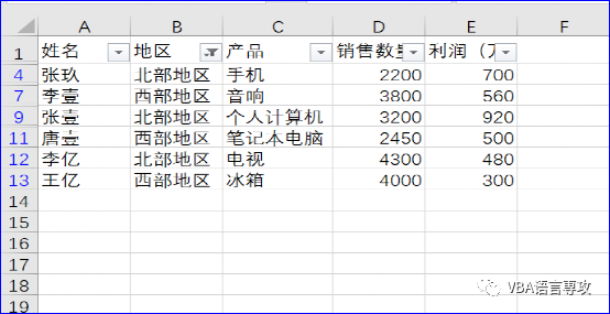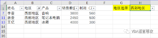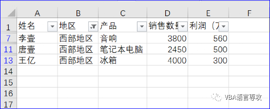 的界面,会筛选出“北部地区”和“西部地区”的数据: