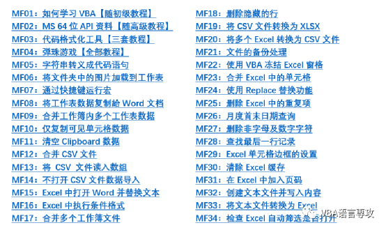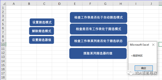为了更好的完善学员的知识结构,及丰富学员的实践经验,我还会提供给大家更多的VBA工具,有较复杂些的NZ系列工具,较容易些的YZ系列,同时还有MF系列技术资料,MF,YZ,NZ各个系列的工具,在平台上不会公布代码,大家可以根据自己的需要联系我选择。MF系列技术资料侧重VBA应用技巧和疑难杂症,里面有很多实用技巧提供给大家。对于MF系列资料,学员只要获得我所有教程(9套教程+汉英手册)中的三套及以上就可以索获这个系列资料;如果您获得我的全部教程+手册+工具(NZ,YZ),那么您可以获得我提供的所有MF系列技术资料,如果您还不是我的学员,您可以选择分享。今日给大家介绍的是MF系列技术资料MF34:检查Excel自动筛选是否打开