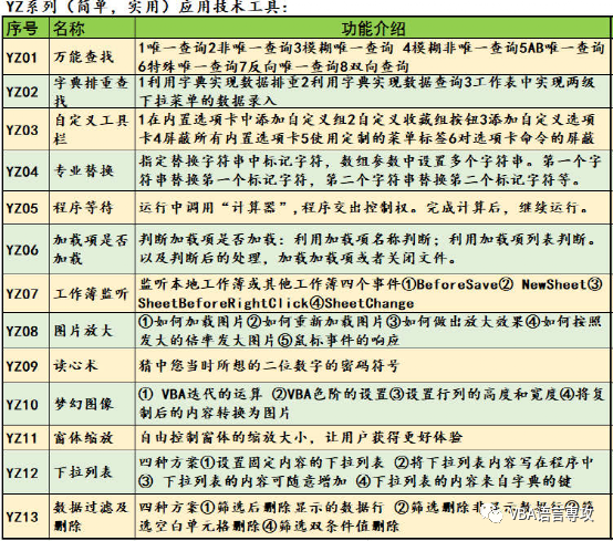 对于初级及中级的学员,很想看到VBA的利用价值。也是对自己知识点的整合。我推出的YZ系列工具,可以让这个阶段的学员感受到VBA之强大。坚定自己学习VBA的决心。VBA工具共两个系列,一个是YZ系列,一个是NZ系列。YZ系列比较简单些,实用性强,可以在自己的工作中方方面面都可以利用到,今日给大家介绍的是YZ系列工具: