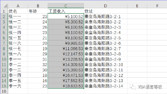 对于上述数据,当您打开时最不想让人看到的是每个人的“工资收入”,这时我们企望的就是把这些“工资收入”的单元格进行加密。