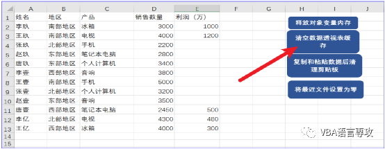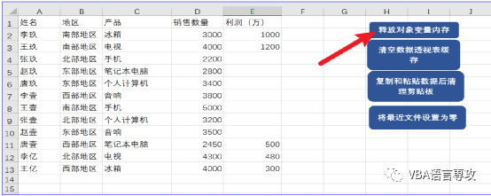 资料提供四种常用的应用场景:①释放对象变量内存 ②清空数据透视表缓存 ③复制和粘贴数据后清理剪贴板