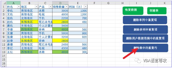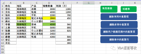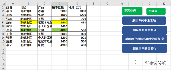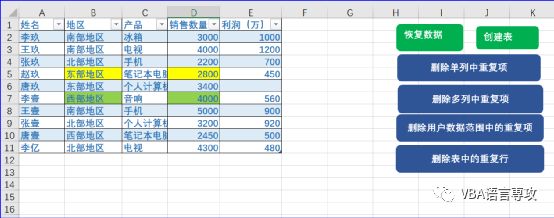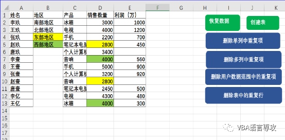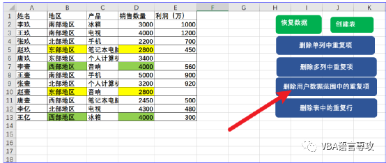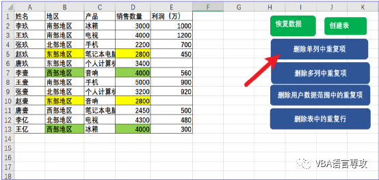 :VBA_删除Excel中的重复项