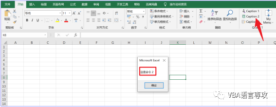 实现这个功能的是我提供的myExcelC.xlsm文件,如果加载正确,会在主页选项卡旁边看到一个新选项卡“我的菜单”。如下截图: