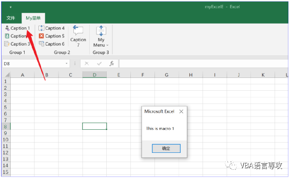 实现这个功能是我提供的myExcelA.XLSM文件,正确加载后,会在“主页”选项卡的末尾看到一个新组“Group1”,如下截图: