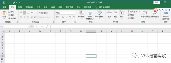 这个应用中我给出了选项卡命令的屏蔽方案,实现这个功能的是我提供的myExcelF.xlsm文件,我们先看一下正常一个文件打开的主页选项卡: