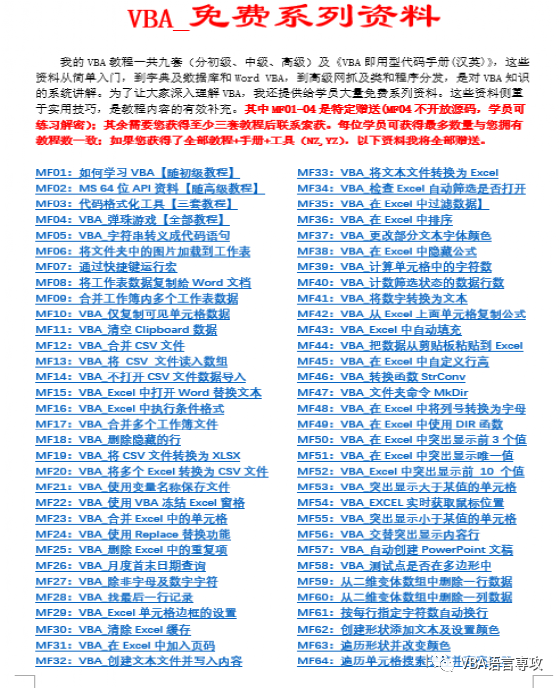 是个人小型自动化处理的有效工具。利用好了,可以大大提高自己的工作效率,而且可以提高数据的准确度。我的教程一共九套,分为初级、中级、高级三大部分。是对VBA的系统讲解,从简单的入门,到数据库,到字典,到高级的网抓及类的应用。另外,为了方便大家学习和应用,我又推出了一部VBA汉英手册,这部手册覆盖了VBA的方方面面,与实际工作衔接度高。