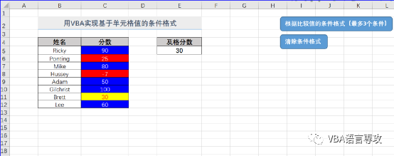 种有效的方法,说明如何使用VBA宏基于Excel中的单元格值或者值执行条件格式。M