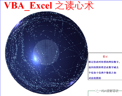 这个应用给大家以玄学的感觉,其实不是,这是VBA通过EXCEL来读懂你心所想的一种应用。