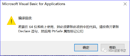 【分享成果,随喜正能量】不要去要求别人理解你、共情你、尊重你。这是弱者的思维。强者不会这样做。 所谓强者,就是能承受更多压力,能接受更多不公,能忍受更多委屈。不怕被利用,就怕你没用。 。跟我学VBA,我这里专注VBA, 授人以渔。我98年开始,从源码接触VBA已经20余年了,随着年龄的增长,越来越觉得有必要把这项技能传递给需要这项技术的职场人员。希望职场和数据打交道的朋友,都来学习VBA,利用VBA,起码可以提高自己的工作效率,可以有时间多陪陪父母,多陪陪家人,何乐而不为呢?这讲我们继续学习64位Office API声明语句第94讲,这些内容是MS的权威资料,看似枯燥,但对于想学习API函数的朋友是非常有用的。当学员学习到高级阶段,如果引用API,这个资料可以直接查到64位写法。大多数情况下我们是将低版本的程序文件升级到高版本,这时您就不必为如下的错误提示所困扰了: ' timer error return valuesConst TIMERR_NOERROR = (0) ' no errorConst TIMERR_NOCANDO = (TIMERR_BASE + 1) ' request not completedConst TIMERR_STRUCT = (TIMERR_BASE + 33) ' time struct size ' flags for wFlags parameter of timeSetEvent() functionConst TIME_ONESHOT = 0 ' program timer for single eventConst TIME_PERIODIC = 1 ' program for continuous periodic event Type TIMECAPS wPeriodMin As Long wPeriodMax As LongEnd Type Declare PtrSafe Function timeGetSystemTime Lib "winmm.dll" Alias "timeGetSystemTime" (lpTime As MMTIME, ByVal uSize As Long) As LongDeclare PtrSafe Function timeGetTime Lib "winmm.dll" Alias "timeGetTime" () As LongDeclare PtrSafe Function timeSetEvent Lib "winmm.dll" Alias "timeSetEvent" (ByVal uDelay As Long, ByVal uResolution As Long, ByVal lpFunction As LongPtr, ByVal dwUser As LongPtr, ByVal uFlags As Long) As LongDeclare PtrSafe Function timeKillEvent Lib "winmm.dll" Alias "timeKillEvent" (ByVal uID As Long) As LongDeclare PtrSafe Function timeGetDevCaps Lib "winmm.dll" Alias "timeGetDevCaps" (lpTimeCaps As TIMECAPS, ByVal uSize As Long) As LongDeclare PtrSafe Function timeBeginPeriod Lib "winmm.dll" Alias "timeBeginPeriod" (ByVal uPeriod As Long) As LongDeclare PtrSafe Function timeEndPeriod Lib "winmm.dll" Alias "timeEndPeriod" (ByVal uPeriod As Long) As Long ' joystick error return valuesConst JOYERR_NOERROR = (0) ' no errorConst JOYERR_PARMS = (JOYERR_BASE + 5) ' bad parametersConst JOYERR_NOCANDO = (JOYERR_BASE + 6) ' request not completedConst JOYERR_UNPLUGGED = (JOYERR_BASE + 7) ' joystick is unplugged ' constants used with JOYINFO structure and MM_JOY messagesConst JOY_BUTTON1 = &H1Const JOY_BUTTON2 = &H2Const JOY_BUTTON3 = &H4Const JOY_BUTTON4 = &H8Const JOY_BUTTON1CHG = &H100Const JOY_BUTTON2CHG = &H200Const JOY_BUTTON3CHG = &H400Const JOY_BUTTON4CHG = &H800 ' joystick ID constantsConst JOYSTICKID1 = 0Const JOYSTICKID2 = 1 Type JOYCAPS wMid As Integer wPid As Integer szPname(0 To MAXPNAMELEN - 1) As Byte wXmin As Long wXmax As Long wYmin As Long wYmax As Long wZmin As Long wZmax As Long wNumButtons As Long wPeriodMin As Long wPeriodMax As Long'#if (WINVER >= 0x0400) wRmin As Long wRmax As Long wUmin As Long wUmax As Long wVmin As Long wVmax As Long wCaps As Long wMaxAxes As Long wNumAxes As Long wMaxButtons As Long szRegKey(0 To MAXPNAMELEN - 1) As Byte szOEMVxD(0 To MAX_JOYSTICKOEMVXDNAME - 1) As Byte'#endifEnd Type Declare PtrSafe Function joyGetDevCaps Lib "winmm.dll" Alias "joyGetDevCapsA" (ByVal id As LongPtr, lpCaps As JOYCAPS, ByVal uSize As Long) As Long Declare PtrSafe Function joyGetNumDevs Lib "winmm.dll" Alias "joyGetNumDev" () As LongDeclare PtrSafe Function joyGetThreshold Lib "winmm.dll" Alias "joyGetThreshold" (ByVal id As Long, lpuThreshold As Long) As LongDeclare PtrSafe Function joyReleaseCapture Lib "winmm.dll" Alias "joyReleaseCapture" (ByVal id As Long) As LongDeclare PtrSafe Function joySetCapture Lib "winmm.dll" Alias "joySetCapture" (ByVal hwnd As LongPtr, ByVal uID As Long, ByVal uPeriod As Long, ByVal bChanged As Long) As LongDeclare PtrSafe Function joySetThreshold Lib "winmm.dll" Alias "joySetThreshold" (ByVal id As Long, ByVal uThreshold As Long) As Long ' MMIO error return valuesConst MMIOERR_BASE = 256Const MMIOERR_FILENOTFOUND = (MMIOERR_BASE + 1) ' file not foundConst MMIOERR_OUTOFMEMORY = (MMIOERR_BASE + 2) ' out of memoryConst MMIOERR_CANNOTOPEN = (MMIOERR_BASE + 3) ' cannot openConst MMIOERR_CANNOTCLOSE = (MMIOERR_BASE + 4) ' cannot closeConst MMIOERR_CANNOTREAD = (MMIOERR_BASE + 5) ' cannot readConst MMIOERR_CANNOTWRITE = (MMIOERR_BASE + 6) ' cannot writeConst MMIOERR_CANNOTSEEK = (MMIOERR_BASE + 7) ' cannot seekConst MMIOERR_CANNOTEXPAND = (MMIOERR_BASE + 8) ' cannot expand fileConst MMIOERR_CHUNKNOTFOUND = (MMIOERR_BASE + 9) ' chunk not foundConst MMIOERR_UNBUFFERED = (MMIOERR_BASE + 10) ' file is unbuffered ' MMIO constantsConst CFSEPCHAR = "+" ' compound file name separator char. Type MMIOINFO dwFlags As Long fccIOProc As Long pIOProc As LongPtr wErrorRet As Long htask As LongPtr cchBuffer As Long pchBuffer As String pchNext As String pchEndRead As String pchEndWrite As String lBufOffset As Long lDiskOffset As Long adwInfo(0 To 2) As Long dwReserved1 As Long dwReserved2 As Long hmmio As LongPtrEnd Type Const MMIO_RWMODE = &H3 ' mask to get bits used for opening ' file for reading/writing/bothConst MMIO_SHAREMODE = &H70 ' file sharing mode number ' constants for dwFlags field of MMIOINFOConst MMIO_CREATE = &H1000 ' create new file (or truncate file)Const MMIO_PARSE = &H100 ' parse new file returning pathConst MMIO_DELETE = &H200 ' create new file (or truncate file)Const MMIO_EXIST = &H4000 ' checks for existence of fileConst MMIO_ALLOCBUF = &H10000 ' mmioOpen() should allocate a bufferConst MMIO_GETTEMP = &H20000 ' mmioOpen() should retrieve temp name Const MMIO_DIRTY = &H10000000 ' I/O buffer is dirty' MMIO_DIRTY is also used in thefield of MMCKINFO structure Const MMIO_OPEN_VALID = &H3FFFF ' valid flags for mmi