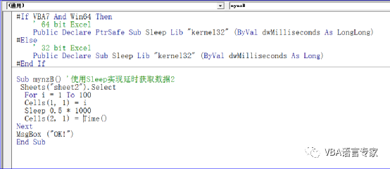Sub mynzB() '使用Sleep实现延时获取数据2