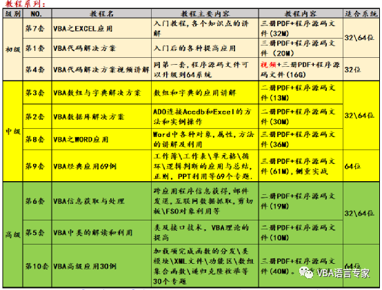 我20多年的VBA实践经验,全部浓缩在下面的各个教程中,教程学习顺序