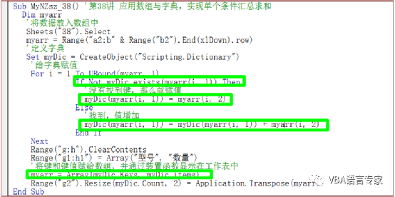 Sub MyNZsz_38() '第38讲 应用数组与字典,实现单个条件汇总求和