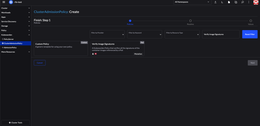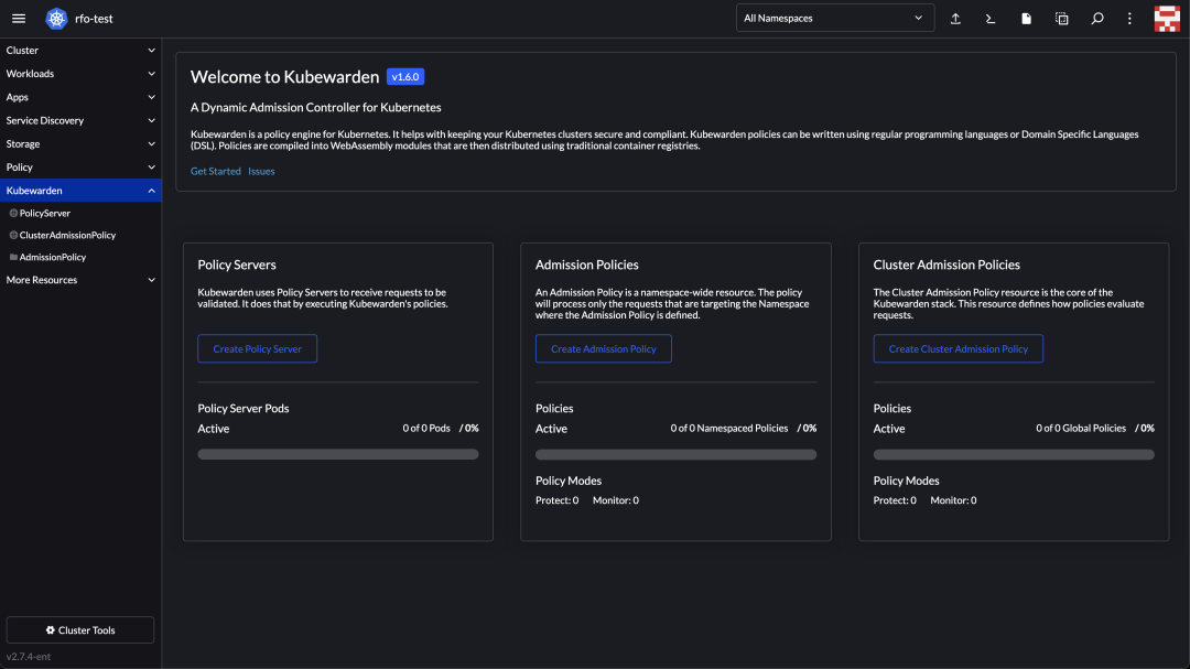 选项卡中,找到 Kubewarden