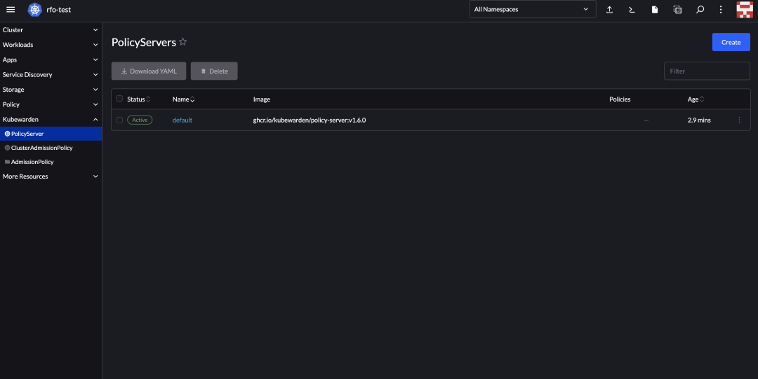 APP。安装成功后,集群中 Kubewarden