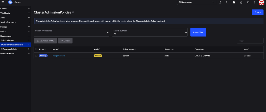创建完成后,回到 ClusterAdmissionPolicies
