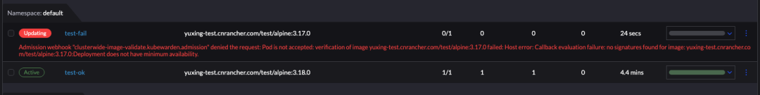 镜像创建 deployment,在创建后,会提示由于无签名而无法创建 pod: