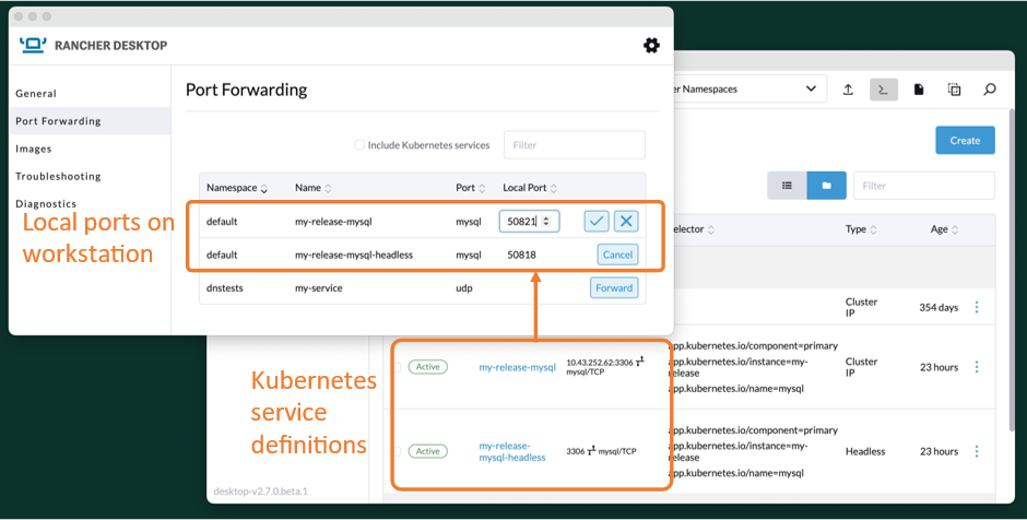Rancher Desktop 配备了一个包含所有 Rancher Desktop 日志文件的文件夹,以及故障排查和诊断功能,帮助识别常见问题的原因和可能的解决方案。开发者还可以管理端口转发,以便能够访问本地 Kubernetes 集群中创建的 service 和 ingresse。