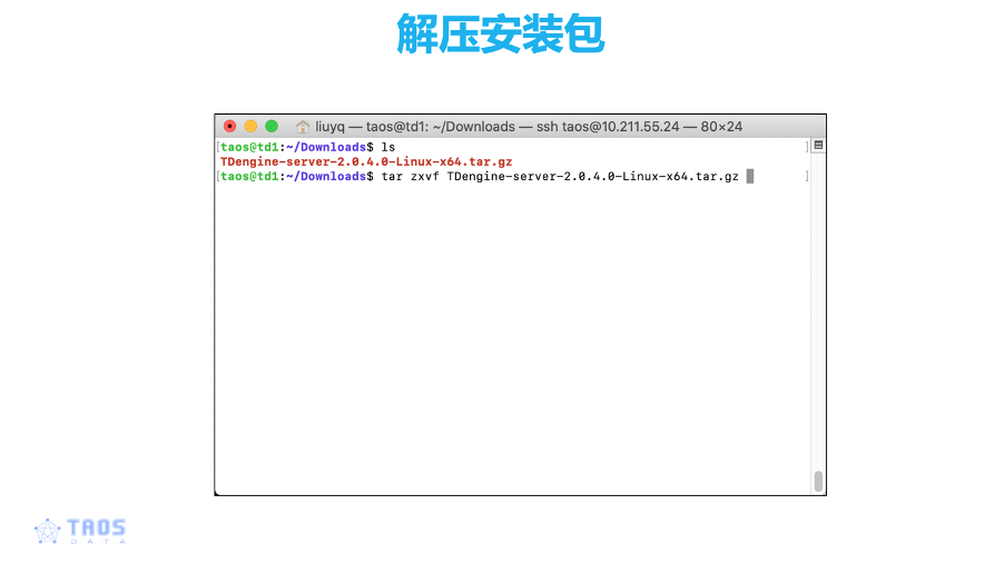 tar zxvf TDengine-server-2.0.4.0-Linux-x64.tar.gz