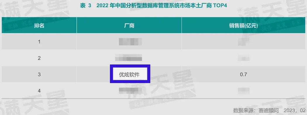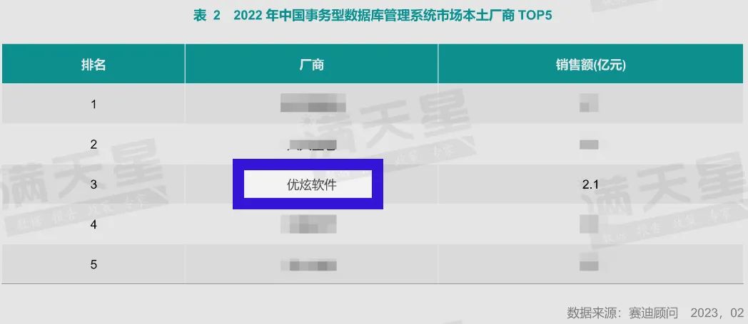 赛迪顾问发布《2022-2023年中国平台软件市场研究年度报告》,优炫数据库市场份额在事务型数据库和分析型数据库均位居前三,持续位居中国数据库管理系统市场国内数据库厂商前列。
