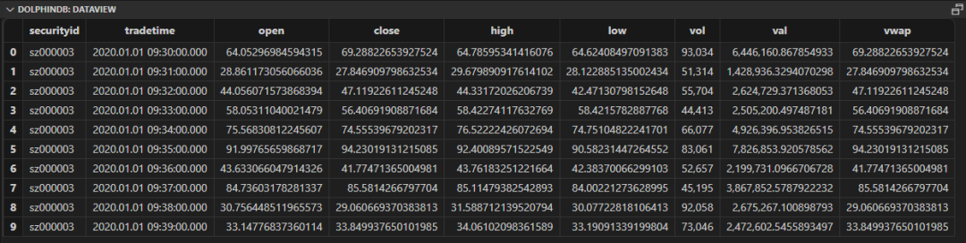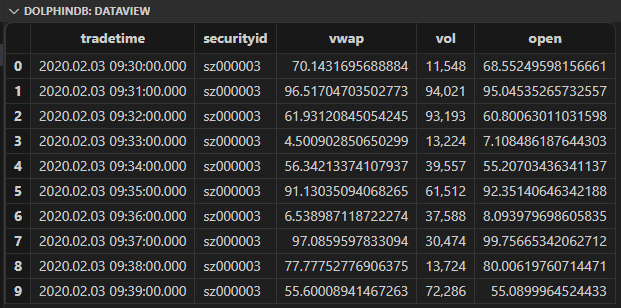 对于分钟频、快照、逐笔等中高频数据,我们推荐大家使用 SQL 模式,结合 DolphinDB 的分区存储方案,高效实现库内并行计算。