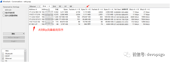 注:-P 参数会将请求服务的端口显示出来,也就是说是通过服务器哪个端口建立的连接,看内网流量执行 iftop -i eth0 -P 命令
