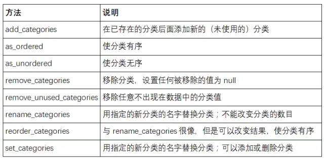 类似于Series.str处理器的字符串方法。下面演示了Series.cat最常用的方法。