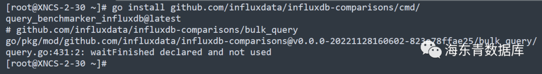 我学着开发同学在Github上寻找代码复制粘贴的姿势(我说的一定不是我司同学阿伟!),去寻找时序数据库领域有没有类似于关系型数据库的benchmarksql的性能测试工具,且能够支持某数据库协议。很快就发现了comparison工具,但它没有提供二进制下载,这不是啥问题,作为学过几天编程的我,编译安装Go程序还是很擅长的,于是熟练的敲下go install,但是却......