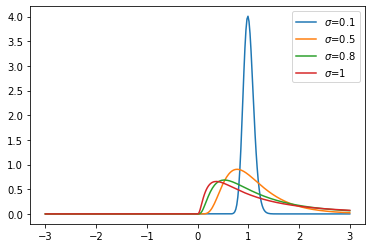 8plot(x, n2.pdf(x), '-', color="seagreen", label="loc=0")