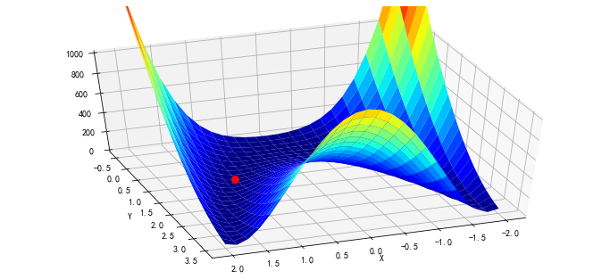 Rosenbrock 函数是一个用来测试优化函数效果的一个非凸函数: