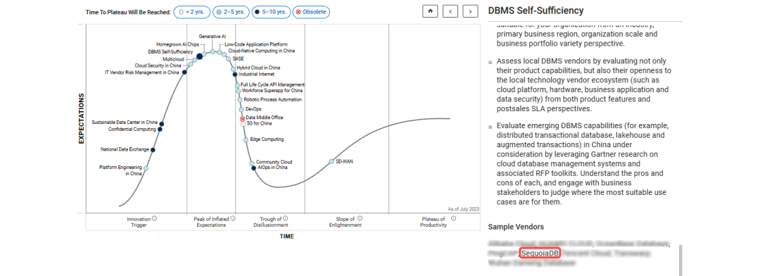 近日,Gartner发布了《Hype Cycle for ICT in China, 2023》报告(下简称报告),该报告旨在评估中国信息技术在不同阶段的成熟度与应用情况。巨杉数据库凭借在DBMS Self-Sufficiency(数据库管理系统的自主能力)领域的突出表现,成功入选该报告。此次入选是对巨杉数据库技术优势和持续创新精神的高度认可,标志着巨杉数据库在分布式领域的自研道路获得业界的高度肯定。