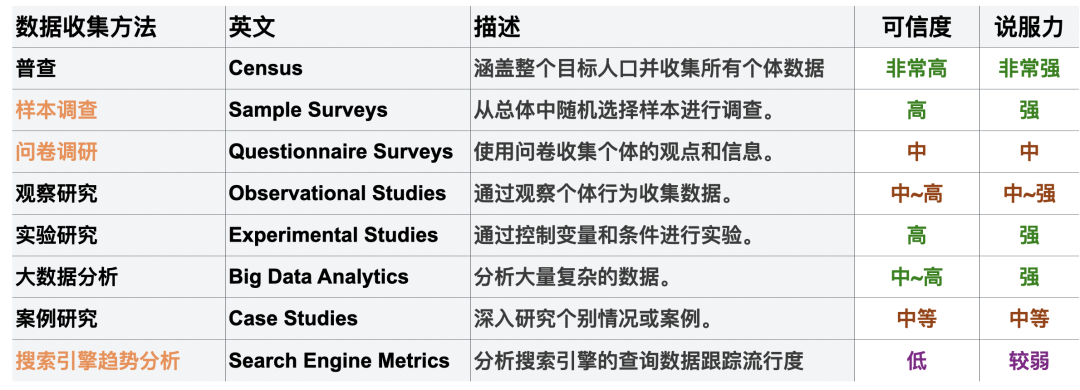 StackOverflow 年度调查属于对全世界开发者的一次抽样调查,使用问卷调研的形式,具有中~高程度的可信度与说服力。对于数据库流行度、喜爱度、需求度这样的问题,普查、实验、大数据这些方法成本过于高昂(无限趋近于不可能),可行的数据收集方式也就是 问卷调研,案例研究,搜索引擎 这几种。