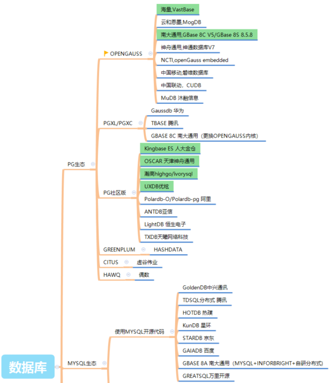 无论是全球的数据库谱系图,还是中国国产数据库谱系图,PostgreSQL 的生态都要比 MySQL 繁荣的太多太多。