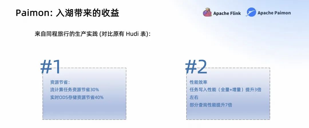 入湖的资源节省了 30%-40%。 写入性能提升了 3 倍。 部分查询的性能提升了 7 倍左右。
