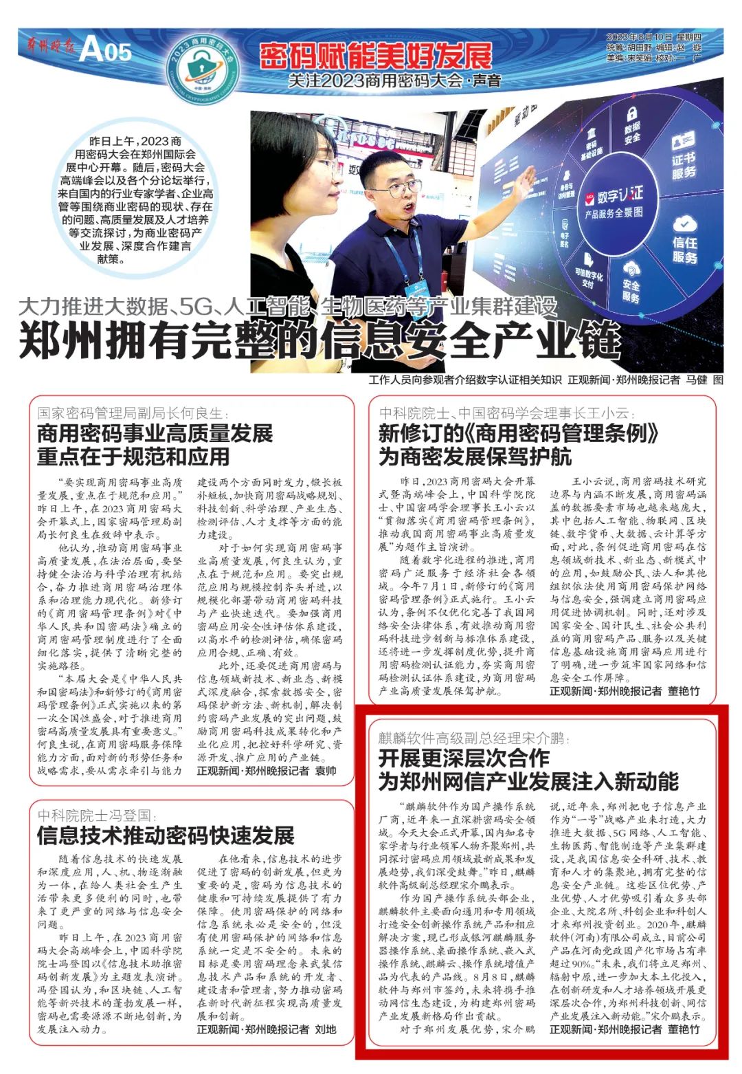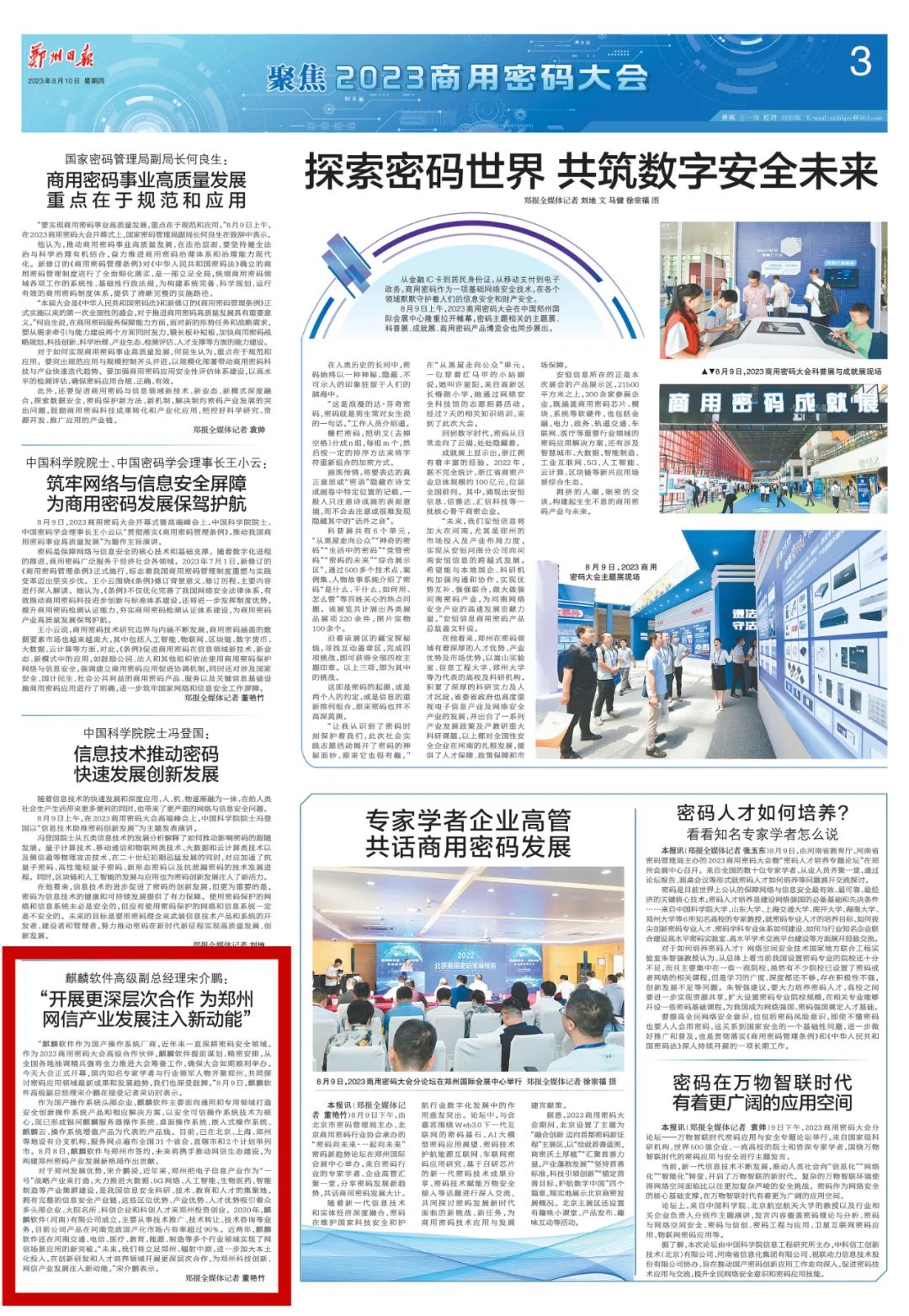 密码是网络空间安全的根本性核心技术,也是赋能数字经济发展的核心技术和基础支撑。麒麟软件以安全可信操作系统技术为核心,将继续专注自主创新、生态建设,与合作伙伴携手推动密码技术的创新和应用,为构建自主可信的网络环境基石贡献力量,为中原地区的经济社会发展提供有力的支撑。