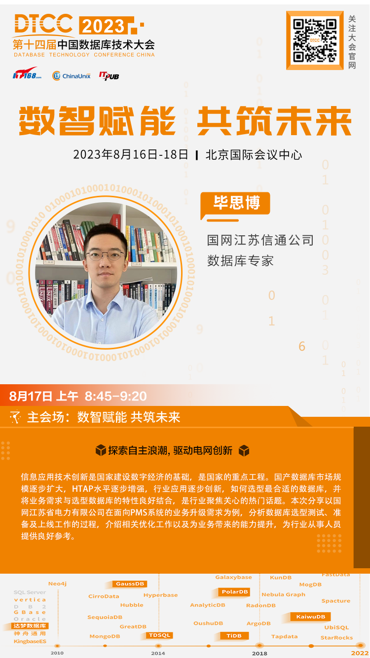 2023年8月16日~18日,由IT168联合旗下ITPUB、ChinaUnix两大技术社区主办的第14届中国数据库技术大会(DTCC2023)将在北京国际会议中心隆重召开。