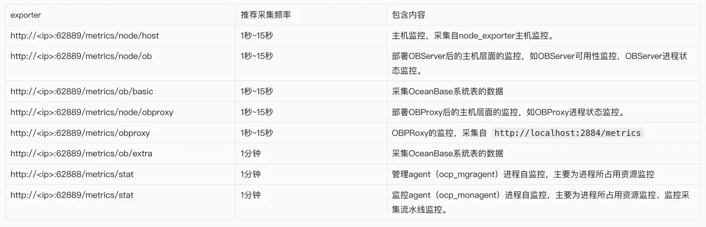 - ocp_monagent 是监控进程,采集OBServer、OBProxy、主机监控数据;