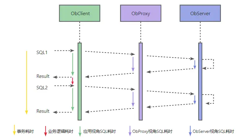 在实际业务中,一旦用户发现有慢的 SQL 请求,或者存在某个慢的事务,可以从慢 SQL 的整个执行链路中快速定位是哪个执行阶段慢。又或者在某个事务中,如果发现一个 SQL 结束到另一个 SQL 再发起之间的时间较长,则可请业务同学查看业务逻辑侧可能存在的问题。
