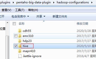 再进入kettle-6.1.0.1_07270\plugins\pentaho-big-data-plugin\hadoop-configurations目录