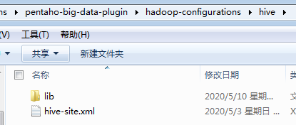将hive-site.xml配置文件放入hive目录中,并创建lib目录: