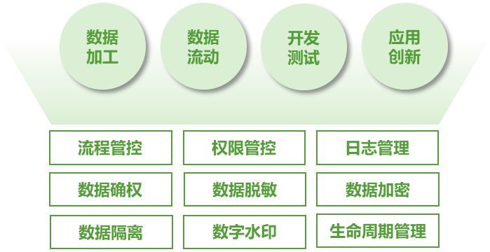 安全管控复杂,涉及数据导出、数据传输、数据溯源等诸多环节,且不同的应用系统会牵扯不同的技术手段和审批管控流程。整体来说,其需要的技术包括但不限于:流程管控、权限管控、日志管理、数据确权、数据脱敏、数据加密、数据隔离、数字水印、数据的生命周期管理等等。