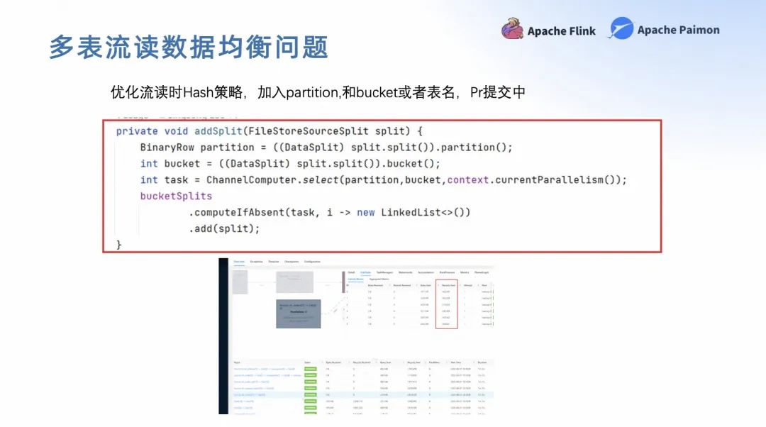 然后让流读的数据更加均衡的流入到各个算子中,提升了整个容器的利用率。近期我们也会把 pr 提交到社区里,大家可以关注一下。
