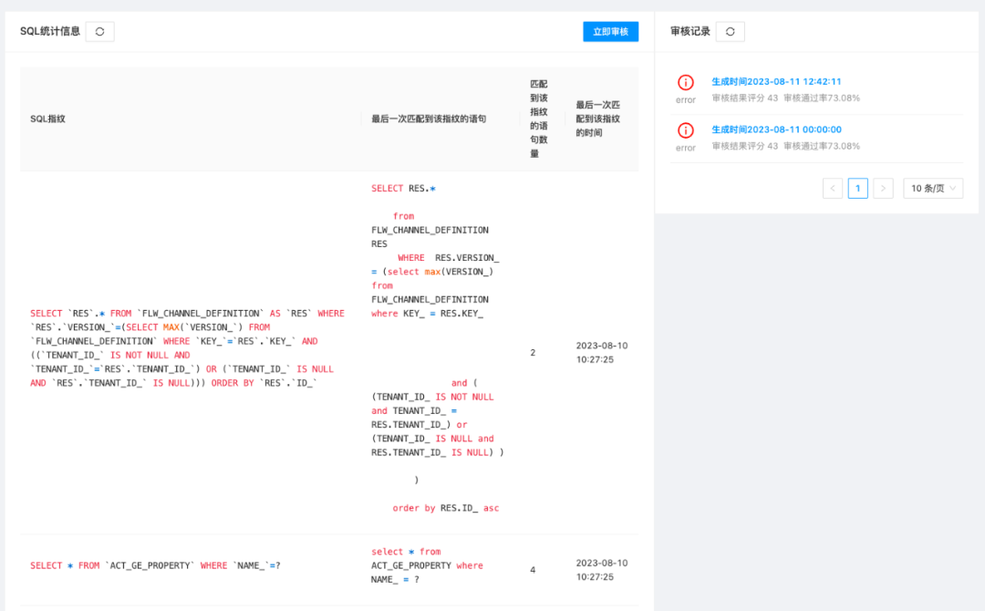 3. 进入平台,可以看到目前应用已经执行的 SQL。